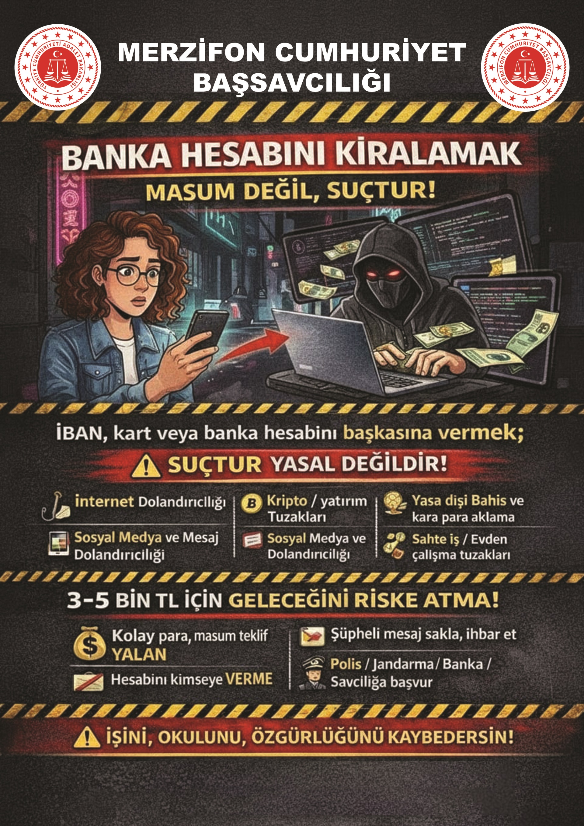 BANKA HESABINI KİRALAMAK MASUM DEĞİL, SUÇTUR! Bir Daha Gösterme x
